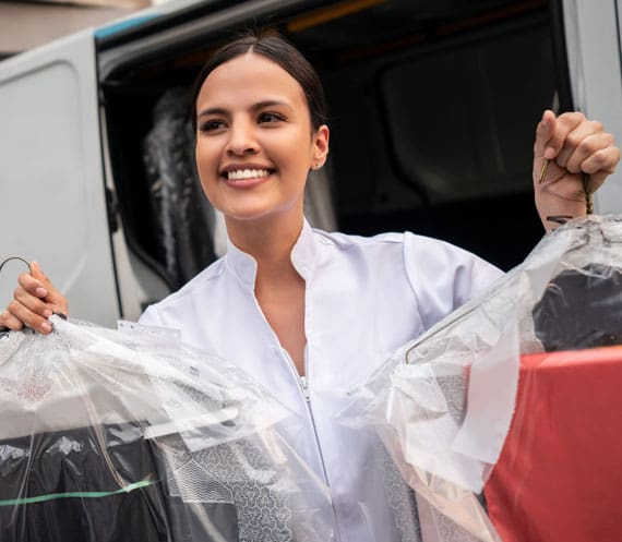 Simply sign up on our website or call us to arrange a convenient pick up time for your dry cleaning items.